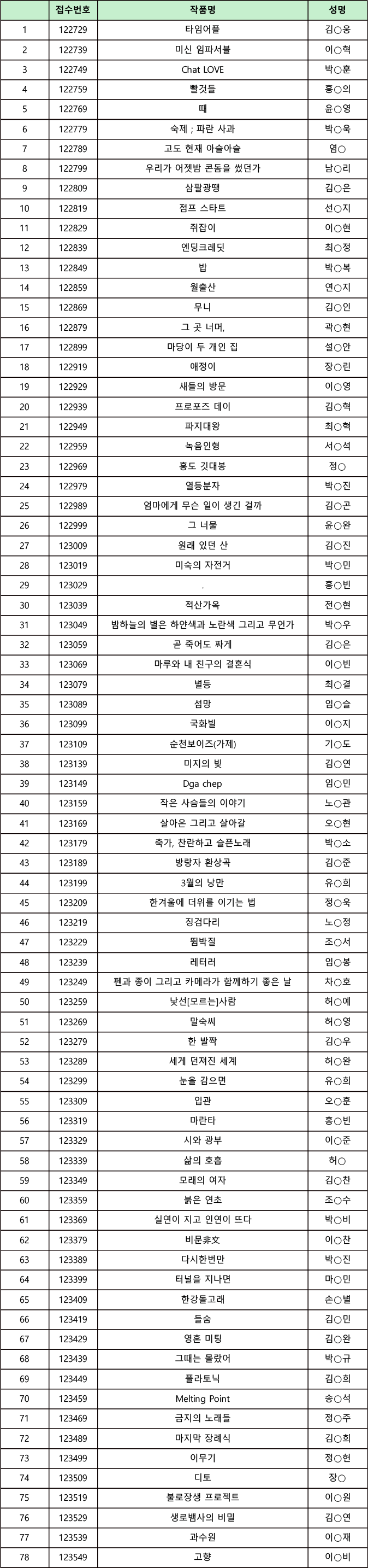 ○ 접수편수 : 총 78편